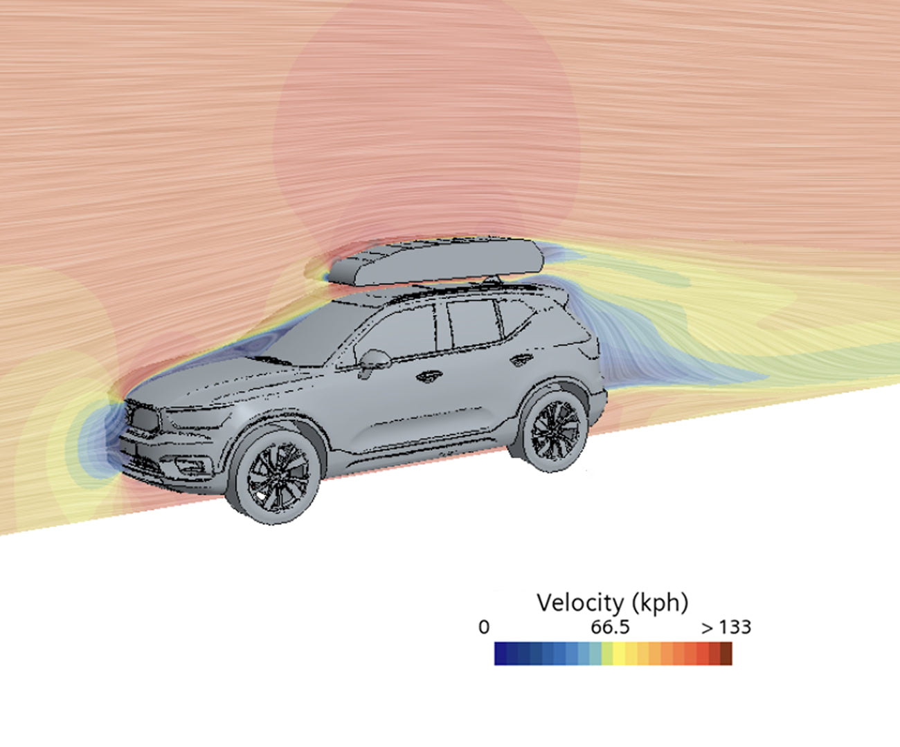 Independent CFD simulations show that Twistboxes generates approximately 25.6% less aerodynamic drag from the roof box itself compared to a traditional hard-shell roof box of similar size.