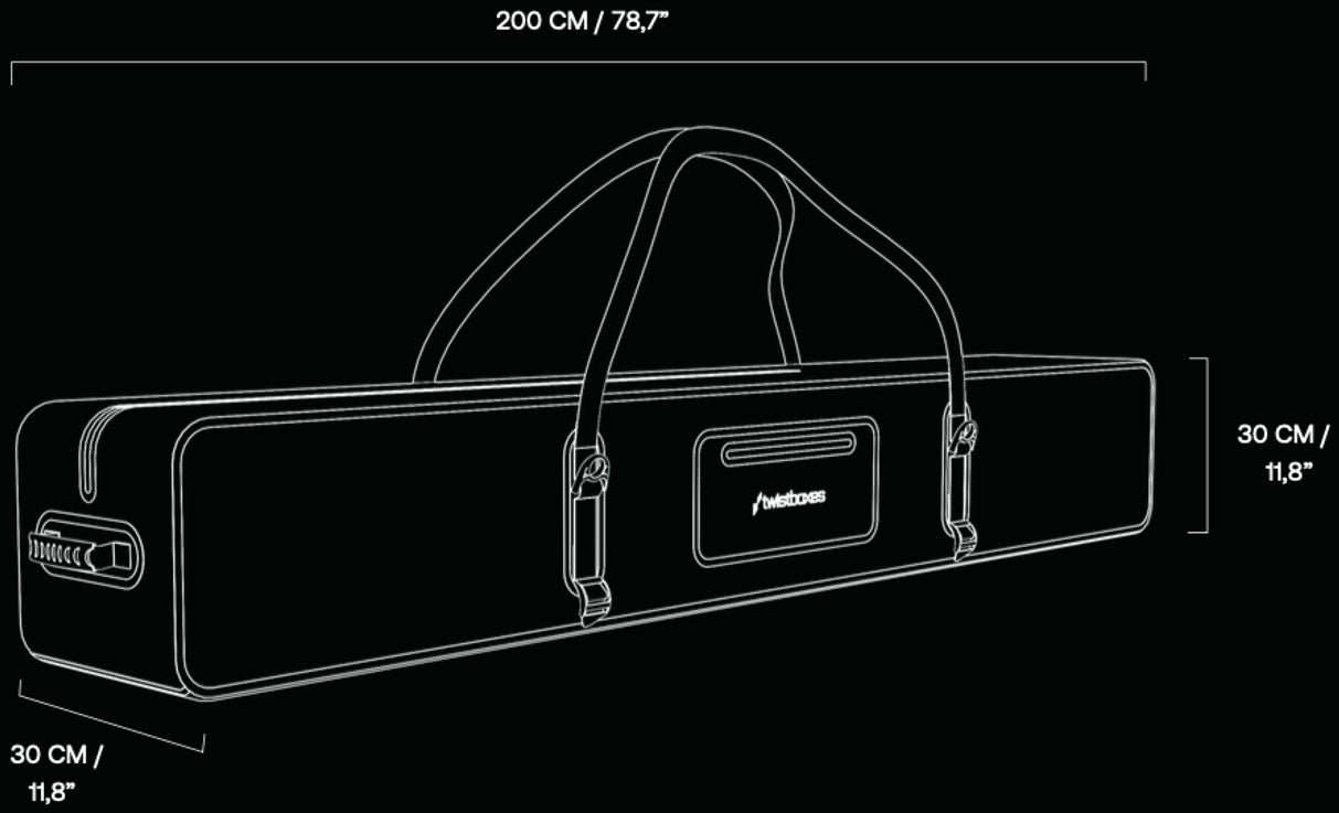 Twistboxes is the original innovation behind VACme-Tech: 520 litres on your roof, 81 × 30 cm in your closet. 16.5 kg. Crash-tested to child car seat standards. Watch it go from rolled up to road-ready in 60 seconds.
